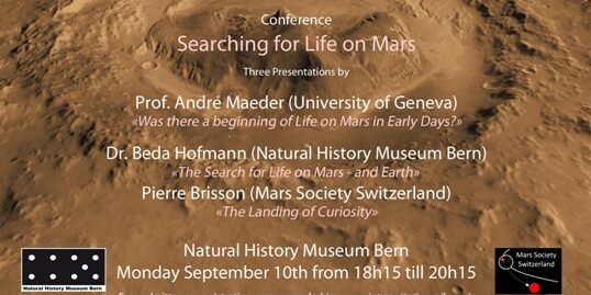 La delegazione svizzera della Mars Society ha in programma per il 10 settembre una conferenza dal titolo “Searching for Life on Mars”.