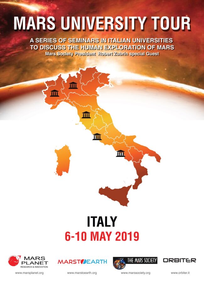 We are preparing the Mars University Tour from 6th to 10th May: A series of talks in some Universities and Research Centres in Italy to discuss about the Human Exploration of Mars. Special Guest Robert Zubrin.