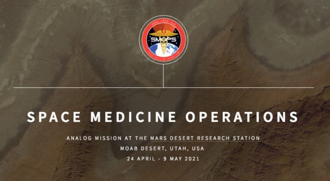 Announcing our Mission at MDRS next year 24 April / 9 May 2021 CREW 246. MISSION SMOPS=SPACE MEDICINE OPERATIONS www.smops.space https://www.facebook.com/SMOPS-Space-Medicine-OPerationS-108332750913116 https://www.instagram.com/smops_mdrs/