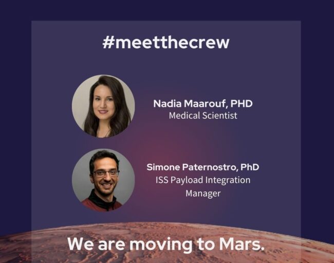 #meetthecrew Top NewsBy Mars Planet3 April 2021Leave a commentNadia Maarouf and Simone Paternostro are two members of the crew of our mission SMOPS: www.smops.space
