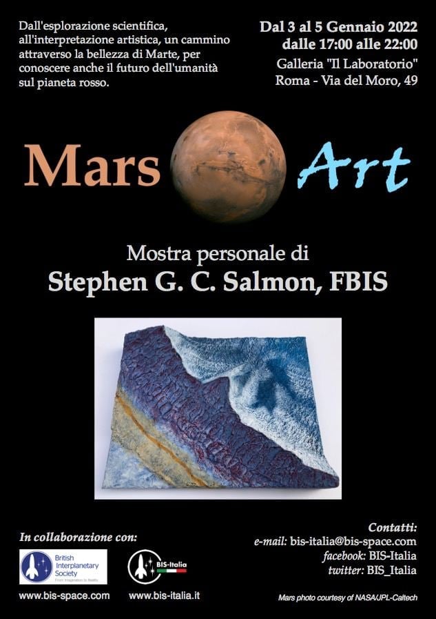 Mostra personale di Stephen G. C. Salmon, FBIS: “Dall’esplorazione scientifica, all’interpretazione artistica, un cammino attraverso la bellezza di Marte, per conoscere anche il futuro dell’umanità sul pianeta rosso.”